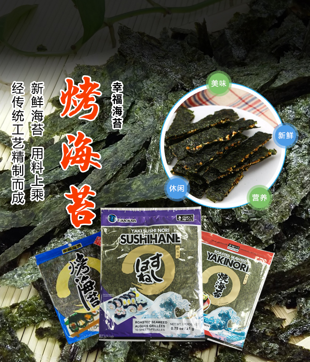 上海高岡屋食品有限公司是日本株式會(huì)社高岡屋在中國(guó)投資的獨(dú)資公司,日本國(guó)株式會(huì)社高岡屋于一八九零年創(chuàng)立,在日本有著百年以上的歷史。公司會(huì)長(zhǎng)高岡正則先生早在60年代就來(lái)到中國(guó),積極推廣海苔的養(yǎng)殖和加工技術(shù),開(kāi)拓發(fā)展了中國(guó)條斑海苔養(yǎng)殖加工事業(yè),其產(chǎn)品在日本國(guó)內(nèi)獲得“農(nóng)林大臣獎(jiǎng)”,在美國(guó)和歐亞地區(qū)也深受消費(fèi)者歡迎。